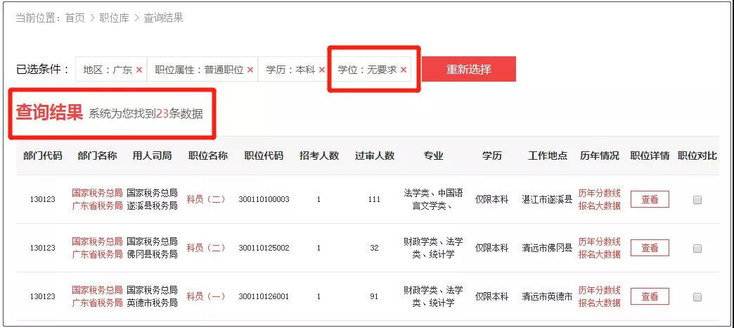 没有学位证、有毕业证是可以报考公务员考试,但是,可选择的岗位较少。以广东省为例,今年公务员招聘中,要求学位的职位有755个,而对学位没有要求的岗位仅23个。